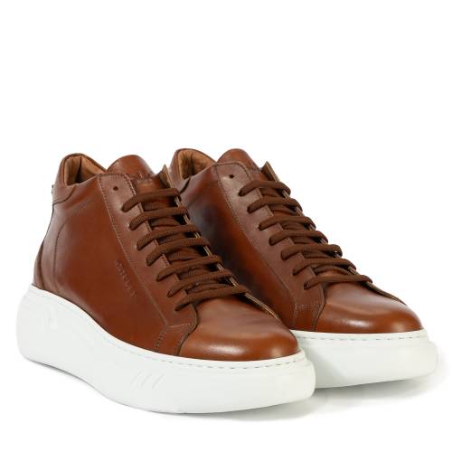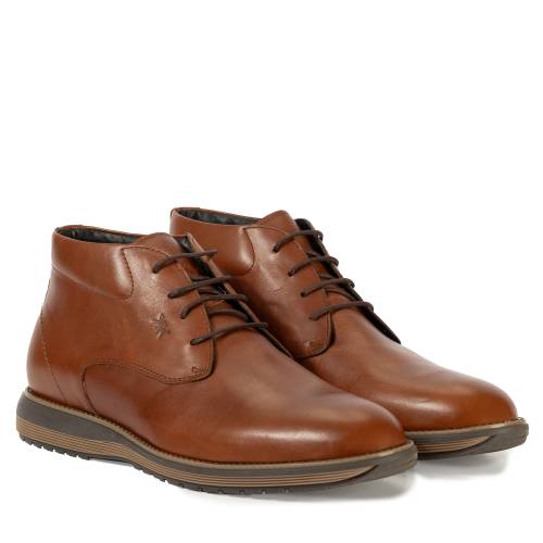 Δερμάτινο ημιμποτάκι δετό με καφέ μπέζ σόλα, σε κονιάκ χρώμα
