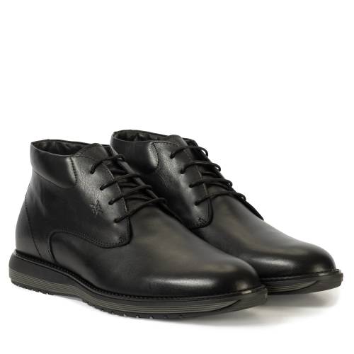 Δερμάτινο μποτάκι δετό σε μαύρο χρώμα με φερμουάρ στα πλάγια και extra light σόλα