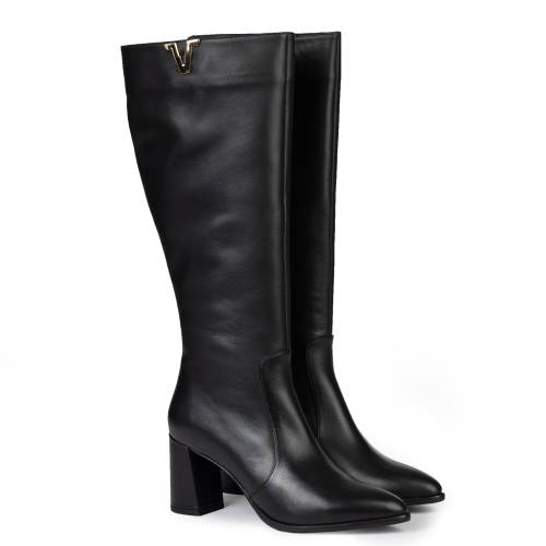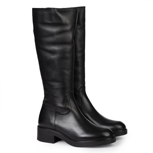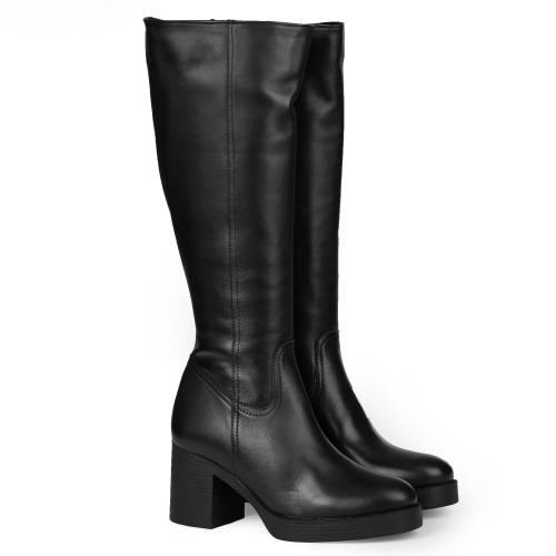 Μπότα δερμάτινη κάτω απο το γόνατο σε μαύρο χρώμα, με φερμουάρ για άνετη εφαρμογή