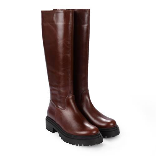 Μπότα δερμάτινη κάτω απο το γόνατο, σε καφέ χρώμα με φερμουάρ και extra light σόλα.