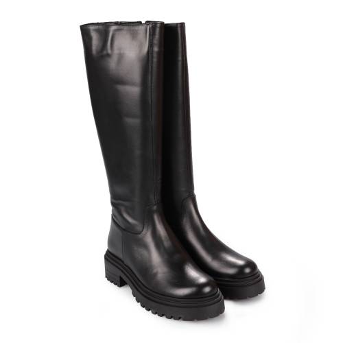 Μπότα δερμάτινη κάτω απο το γόνατο, σε μαύρο χρώμα με φερμουάρ και extra light σόλα.