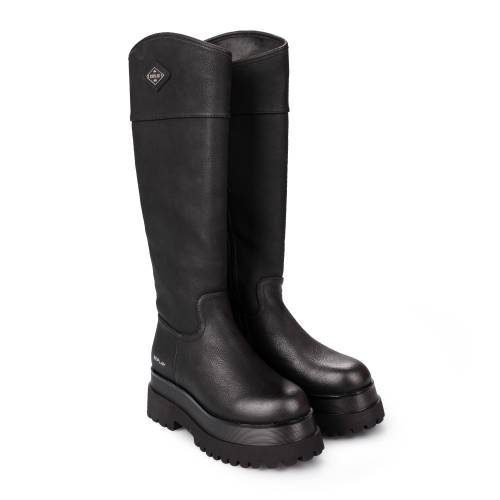 Μπότα κάτω απο το γόνατο, από συνθετικό δέρμα, σε μαύρο χρώμα, με φερμουάρ και δίπατη-τρακτερωτή σόλα.