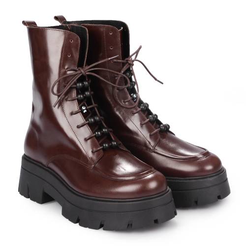 Δερμάτινη μπότα με δίπατη σόλα και φερμουάρ σε καφέ χρώμα