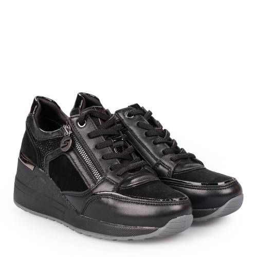 Αθλητικό δερμάτινο, ανατομικό με memory foam και extra light σόλα, σε μαύρο χρώμα