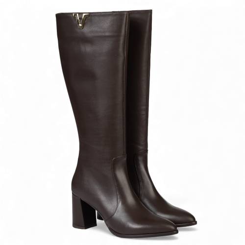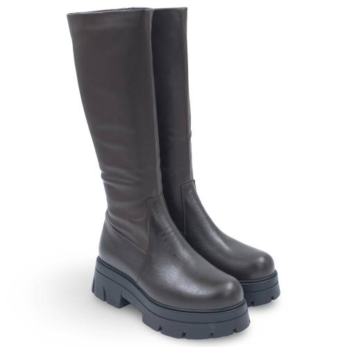 Μπότα δερμάτινη κάτω από το γόνατο σε σκούρο καφέ χρώμα, με φερμουάρ για άνετη εφαρμογή και extra light σόλα