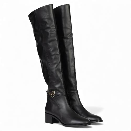 Μπότα δερμάτινη πάνω απο το γόνατο σε μαύρο χρώμα, με αγκράφα και φερμουάρ για άνετη εφαρμογή