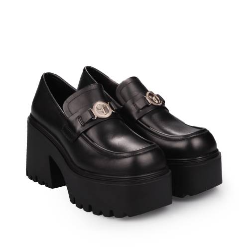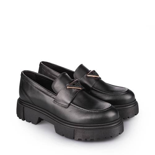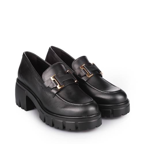 Δερμάτινο loafer σε μαύρο χρώμα με δίπατη σόλα και μοντέρνα αγκράφα