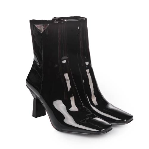 Μποτάκι λουστρίνι σε μαύρο χρώμα με φερμουάρ και μοντέρνο τακούνι