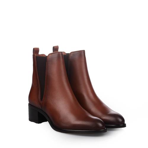 Μποτάκι chelsea δερμάτινο σε κονιάκ χρώμα με λάστιχα και στις δύο πλευρές για άνετη εφαρμογή