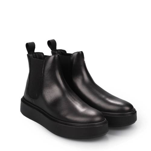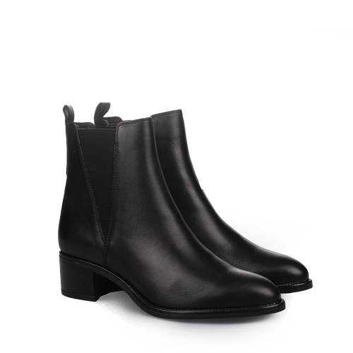 Μποτάκι chelsea δερμάτινο σε μαύρο χρώμα με λάστιχα και στις δύο πλευρές για άνετη εφαρμογή
