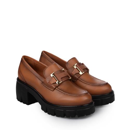 Δερμάτινο loafer σε ταμπά χρώμα με δίπατη σόλα και μοντέρνα αγκράφα