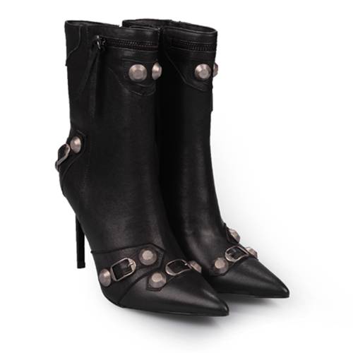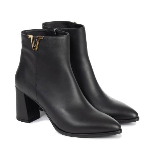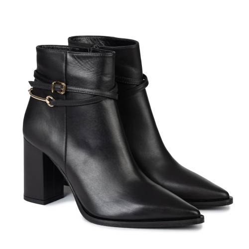 Μποτάκι δερμάτινο σε μαύρο χρώμα, με μοντέρνα αγκράφα και φερμουάρ για άνετη εφαρμογή