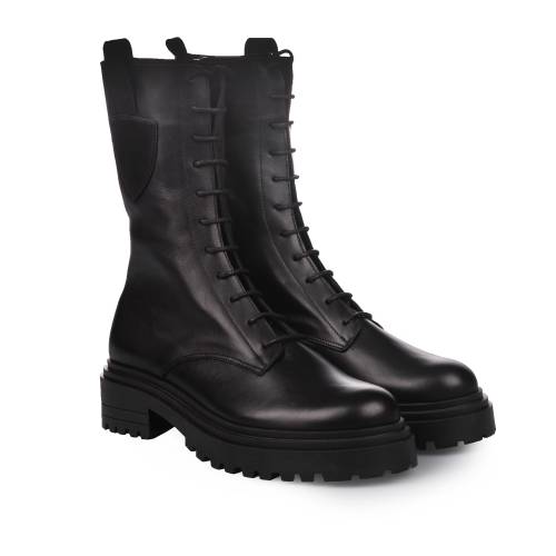 Μπότα δερμάτινη με φερμουάρ σε μαύρο χρώμα με τρακτερωτή σόλα