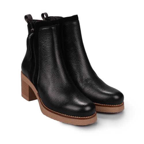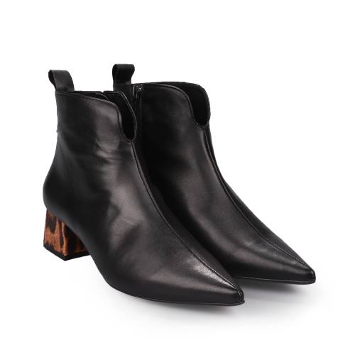 Μποτάκι δερμάτινο ανατομικό, total flex σε μαύρο χρώμα με φερμουάρ και ιδιαίτερο τακούνι