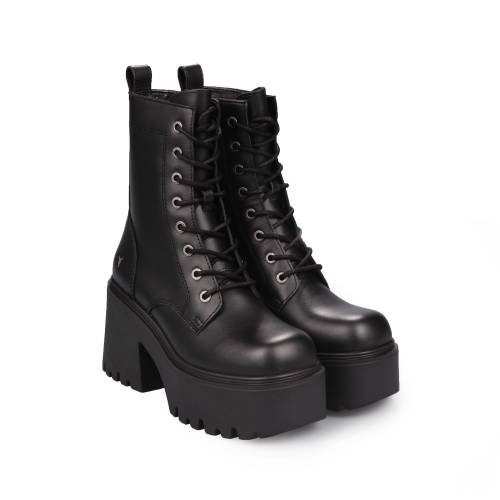 Αρβυλάκι δίπατο δετό σε μαύρο χρώμα με φερμουάρ και τρακτερωτή σόλα