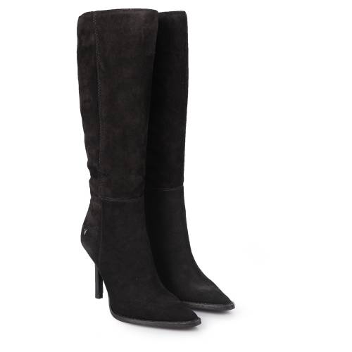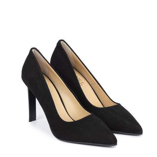 Γόβα στιλέτο καστόρινη, μυτερή σε μαύρο χρώμα. Διαθέτει δέρμα εσωτερικά με δερμάτινο πάτο
