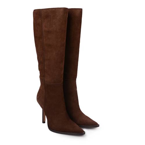 Μπότα μυτερή καστόρι εξωτερικά και ύφασμα εσωτερικά με φερμουάρ σε καφέ χρώμα