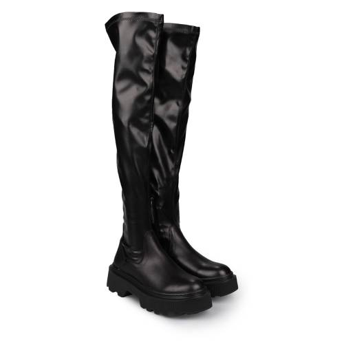 Μπότα δερμάτινη πάνω απο το γόνατο, με φερμουάρ και ελαστικό vinyl στο πάνω μέρος για εύκολη εφαρμογή