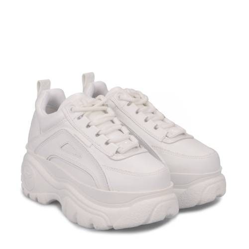 Αθλητικό δερμάτινο δίπατο, δετό με κορδόνια σε άσπρο χρώμα