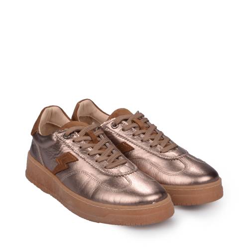 Αθλητικό δετό με γυαλιστερό σπαστό δέρμα, ανατομικό με memory foam, σε μπρονζέ χρώμα