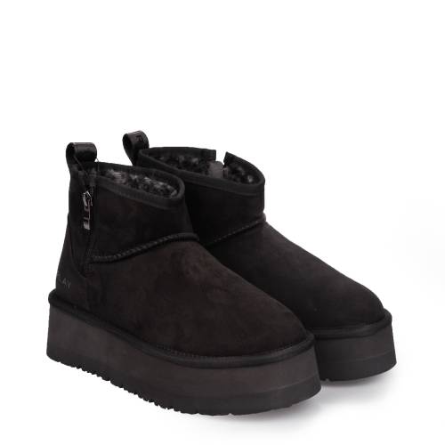 Δίπατο ημιμποτάκι, με φερμουάρ και εσωτερική γούνα σε μαύρο χρώμα