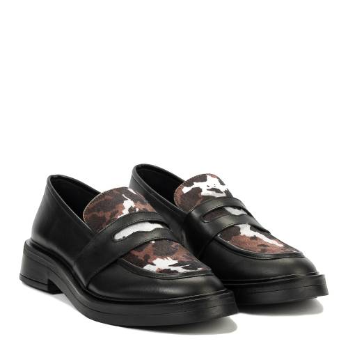 Δερμάτινο loafer σε μαύρο χρώμα με animal print σε pony υλικό στο μπροστινό μέρος