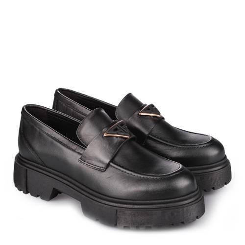 Δερμάτινο loafer σε μαύρο χρώμα με δίπατη σόλα και μοντέρνα αγκράφα