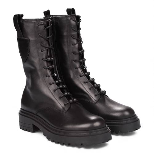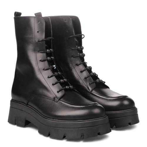 Μποτάκι δερμάτινο δετό σε μαύρο χρώμα, με μοντέρνα σόλα και φερμουάρ στα πλάγια για άνετη εφαρμογή