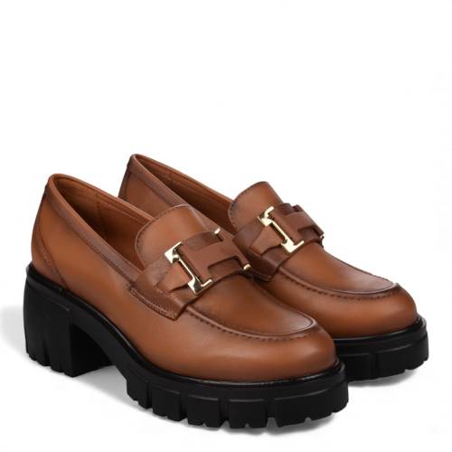 Δερμάτινο loafer σε ταμπά χρώμα με δίπατη σόλα και μοντέρνα αγκράφα