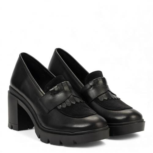 Δερμάτινο loafer σε μαύρο χρώμα με χοντρό τακούνι και φιάπα για μεγάλη άνεση και σταθερότητα