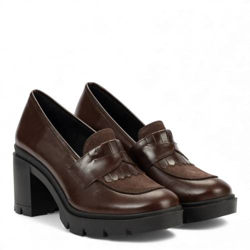 Δερμάτινο loafer σε καφέ χρώμα με χοντρό τακούνι και φιάπα για μεγάλη άνεση και σταθερότητα