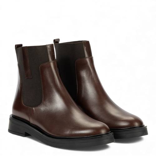 Αρβυλάκι δερμάτινο σε καφέ χρώμα, με αγκράφες και μοντέρνα σόλα, με φερμουάρ στα πλάγια για άνετη εφαρμογή