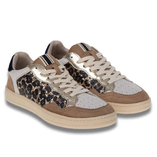 Αθλητικό δετό, σε άσπρο και χρυσό χρώμα με λεοπάρ και καφέ λεπτομέρειες στα πλάγια.