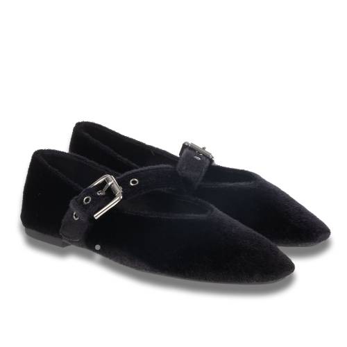 Mπαλαρίνα με pony skin υλικό και μπαρέτα σε μαύρο χρώμα