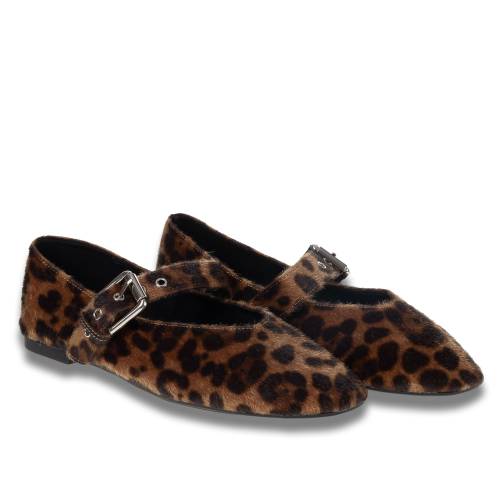 Mπαλαρίνα με pony skin υλικό και μπαρέτα σε leopar χρώμα