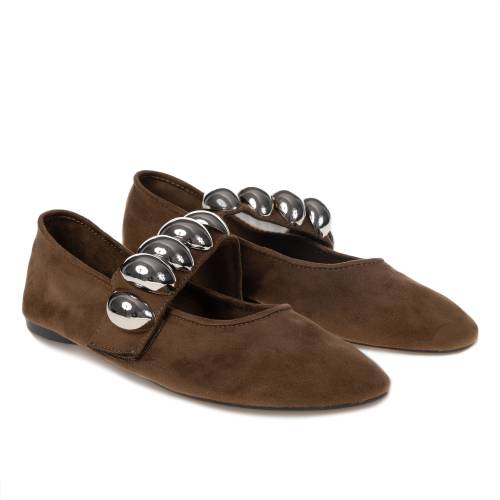 Mπαλαρίνα με βελούδινο υλικό και μοντέρνα μπαρέτα με πέτρες, σε πούρο χρώμα