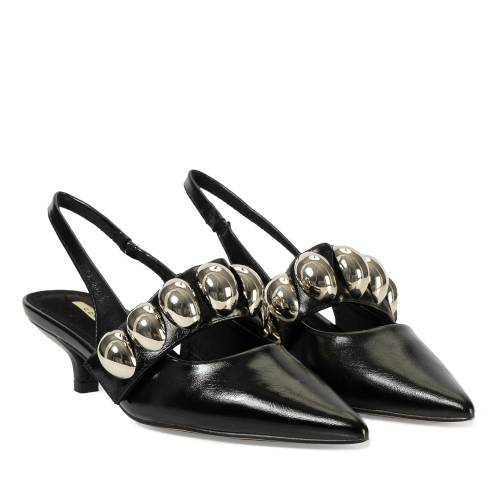 Γόβα εξώφτερνη, μυτερή με λουράκι και μπαρέτα με τρουκς, σε μαύρο χρώμα