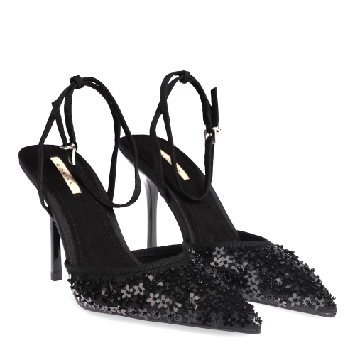 Κατασκευασμένο από συνθετικό υλικό με ανάγλυφη υφή, με peep toe σχεδιασμό και λεπτό τακούνι, προσφέρει κομψότητα και θηλυκότητα για βραδινές εμφανίσεις.