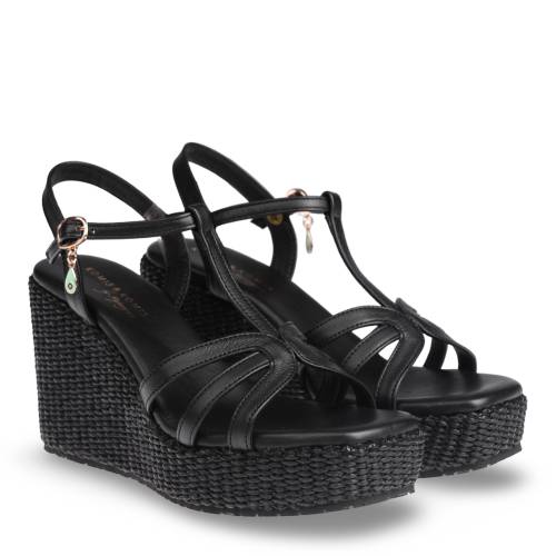 Κατασκευασμένο από δέρμα με πλατφόρμα ψάθινης όψης, προσφέρει καλοκαιρινή κομψότητα και σταθερότητα σε κάθε βήμα.