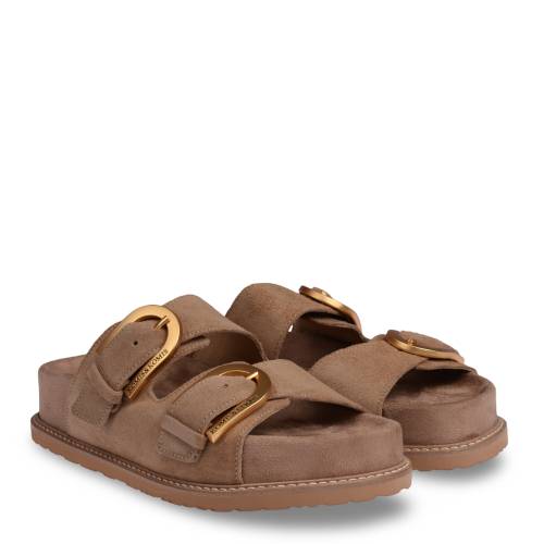 Κατασκευασμένο από δέρμα καστόρι, διαθέτει σχεδιασμό mule με επένδυση ψάθας στη σόλα που προσφέρει άνεση και καλοκαιρινό χαρακτήρα.