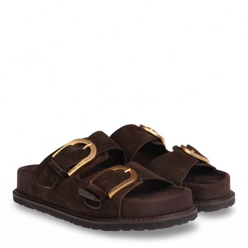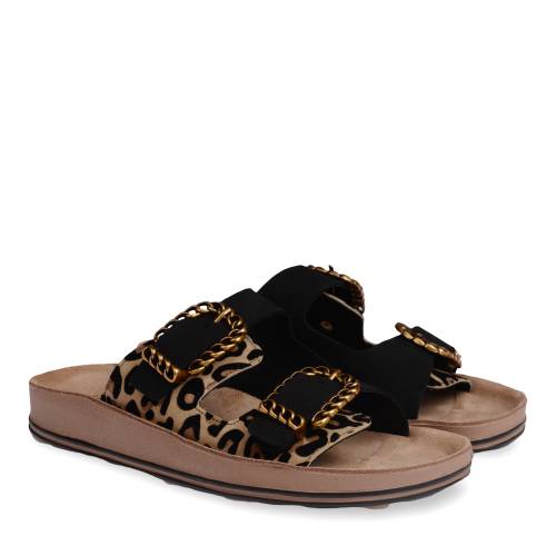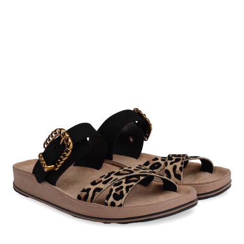 Κατασκευασμένο από γνήσιο δέρμα, συνδυάζει minimal σχεδιασμό με λεοπάρ χρώμα λεπτομέρεια και διακοσμητική αγκράφα για άνετες και κομψές καλοκαιρινές εμφανίσεις.