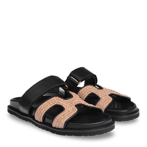 Κατασκευασμένο από δέρμα και ψάθα, συνδυάζει μοντέρνο design με φυσική υφή για άνετες και στιλάτες καλοκαιρινές εμφανίσεις.