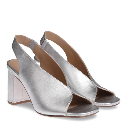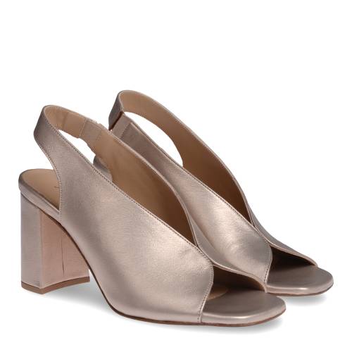 Κατασκευασμένο από γνήσιο δέρμα με μεταλλικό φινίρισμα, διαθέτει κομψό minimal σχεδιασμό με ανοιχτό μπροστινό μέρος και σταθερό τακούνι που προσφέρει άνεση και στυλ σε κάθε εμφάνιση.