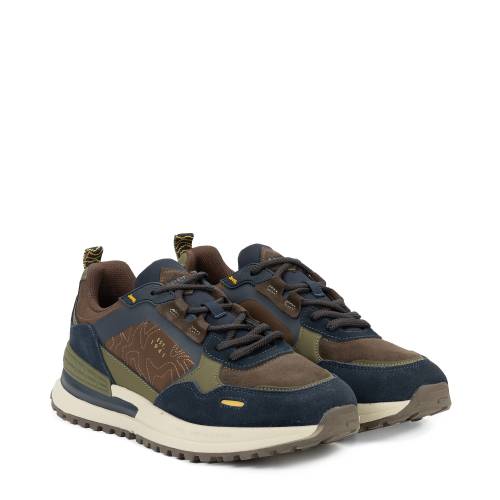 Αθλητικό δετό με extra light σόλα, σε ύφασμα και καστόρι δέρμα, στο μπλέ καφέ χρώμα