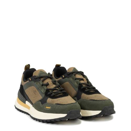 Αθλητικό δετό με extra light σόλα, σε ύφασμα και καστόρι δέρμα, στο καφέ ανοιχτό χακί χρώμα