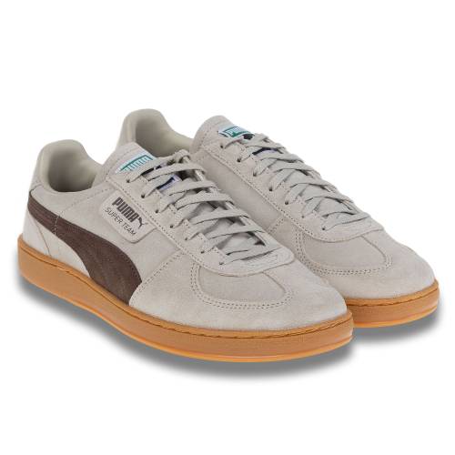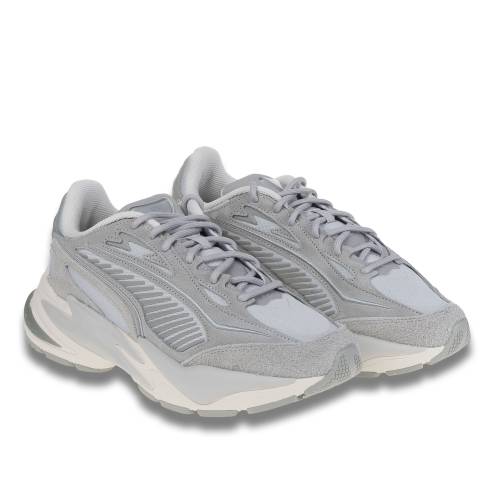 Αθλητικό δετό με ύφασμα και καστόρινες λεπτομέρειες σε γκρί χρώμα, με φαρδία extra light σόλα για extra άνεση
