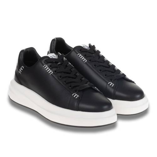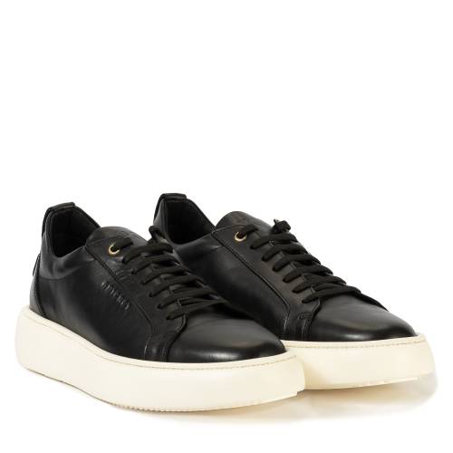 Δερμάτινο αθλητικό δετό, με άσπρο πέλμα σε μαύρο χρώμα