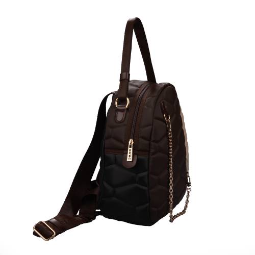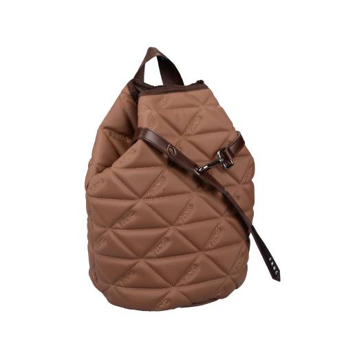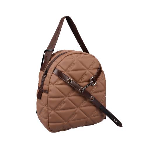 Υφασμάτινο σακίδιο πλάτης με φερμουάρ σε μπέζ καφέ χρώμα και αλυσίδα στο μπροστά μέρος