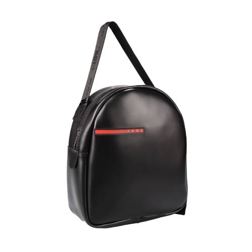 Υφασμάτινο σακίδιο πλάτης με φερμουάρ σε μαύρο χρώμα και διακοσμητικός ιμάντας στο μπροστά μέρος