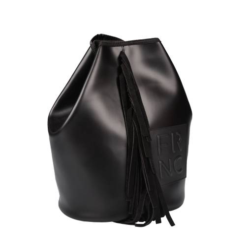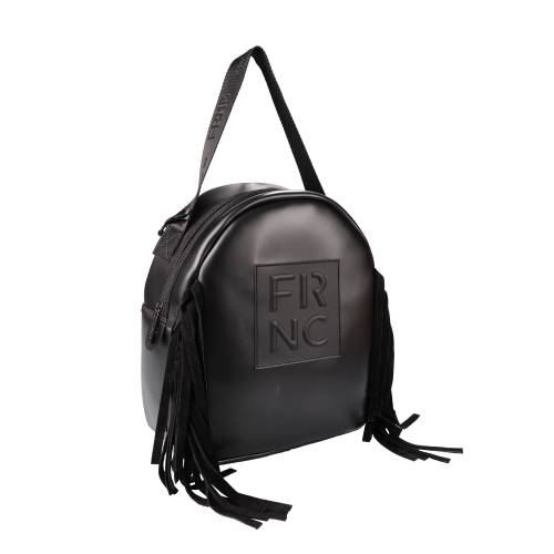 Σακίδιο πλάτης μεγάλου μεγέθους με μαγνητικό κούμπωμα σε μαύρο χρώμα και διακοσμητικά κρόσια στο μπροστά μέρος